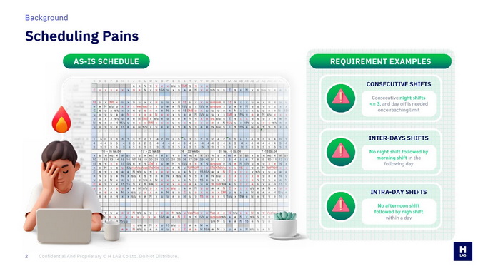 โดยเมื่อเจ้าหน้าที่กรอกเสร็จเรียบร้อยแล้ว จะรวบรวมข้อมูลที่กรอกทั้งหมด และระบบ AI จะทำการคำนวณออกมาเป็นตารางเพื่อตอบโจทย์ทุกฝ่ายที่สุดแบบอัตโนมัติ โดยลดความยุ่งยากในการจัดเวรไปได้แบบง่ายๆเลยทีเดียว