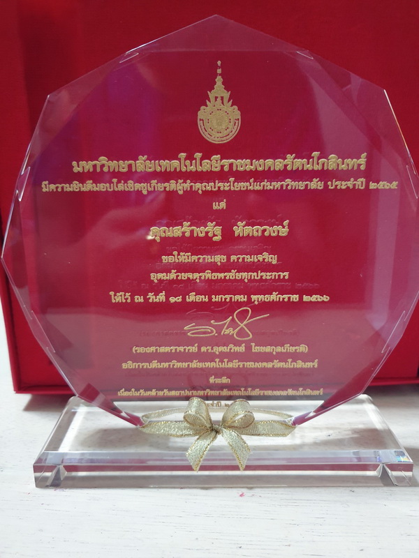 คุณสร้างรัฐ หัตถวงษ์ กรรมการบริหาร บริษัท อินสไปร์ คอมมูนิเคชั่น จำกัด ได้รับมอบโล่เชิดชูเกียรติจากมหาวิทยาลัยเทคโนโลยีราชมงคลรัตนโกสินทร์