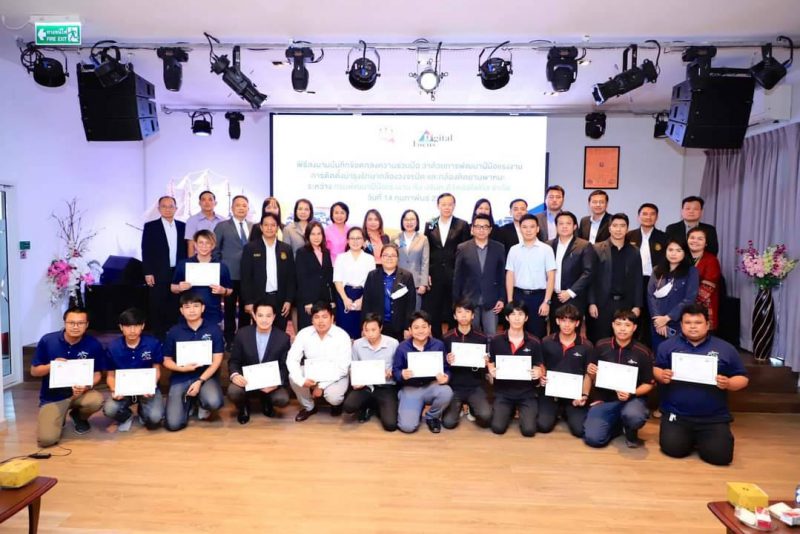 วันนี้ (14 กุมภาพันธ์ 2566) กระทรวงแรงงาน โดยกรมพัฒนาฝีมือแรงงาน (กพร.) จัดพิธีลงนามบันทึกข้อตกลงความร่วมมือ (เอ็มโอยู) ว่าด้วยการพัฒนาฝีมือแรงงานการติดตั้งบำรุงรักษากล้องวงจรปิดและกล้องติดรถยนต์ ระหว่าง กพร.กับ บริษัท ดิจิตอลโฟกัส จำกัด เตรียมความพร้อมแรงงานสู่ช่างมืออาชีพ หนุนอาชีพอิสระ สร้างความเชื่อมั่นผู้บริโภค โดย น.ส.บุปผา เรืองสุด รองปลัดกระทรวงแรงงาน รักษาราชการแทนอธิบดี กพร. มอบหมายให้ น.ส.ไพลิน จินดามณีพร รองอธิบดี กพร. ร่วมลงนามความร่วมมือในครั้งนี้ ณ ห้องประชุมสัมมนา ชั้น 7 อาคาร Smart Building บริษัท ดิจิตอลโฟกัส จำกัด เขตบางกะปิ กรุงเทพมหานคร