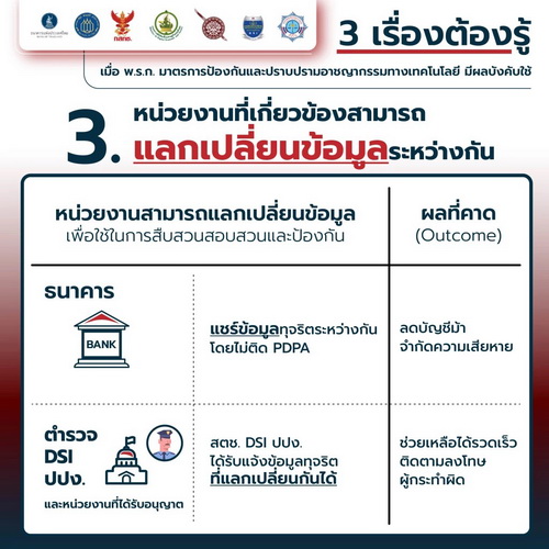 3 หน่วยงานที่เกี่ยวข้องสามารถแลกเปลี่ยนข้อมูล ระหว่างกัน มีดังนี้