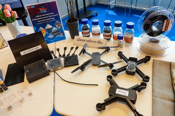 ปัจจุบัน สจล.เป็นแห่งเดียวในไทยที่สามารถผลิตวัสดุ “กราฟีน” ได้เองจากโรงงานต้นแบบผลิตกราฟีนใน สจล. ด้วยกำลังผลิตเดือนละ 15 กก. ทดแทนการนำเข้าซึ่งมีราคากก.ละกว่า 10 ล้านบาท เมดอินไทยแลนด์ นับเป็นความสำเร็จในเฟสที่ 1 และวันนี้ เป็นความสำเร็จในเฟสที่ 2 ทีมวิจัยคิดค้นพัฒนา “แบตเตอรี่กราฟีน” ครั้งแรกในประเทศไทย โดยใช้ รีดิวซ์กราฟีนออกไซด์ ร่วมกับคาร์บอนจากวัสดุการเกษตรธรรมชาติ เช่น ถ่านเปลือกทุเรียน ถ่านกัญชง ถ่านหินลิกไนต์ และคาร์บอนทั่วไป มาประดิษฐ์ขั้วไฟฟ้า