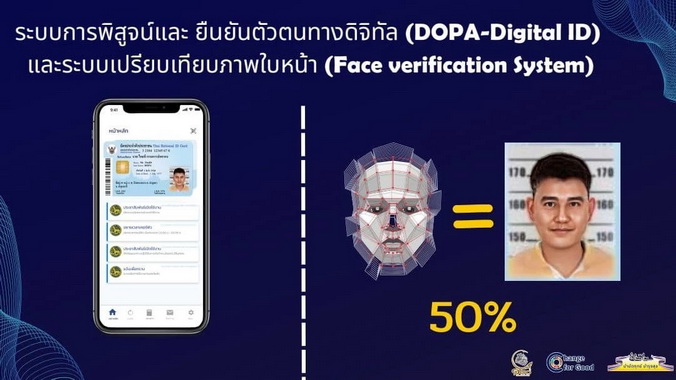 นอกจากนี้ กรมการปกครอง ได้พัฒนาระบบเปรียบเทียบภาพใบหน้า (Face Verification Service) เพื่อให้หน่วยงานผู้ให้บริการด้านพิสูจน์และยืนยันตัวตนทางดิจิทัลใช้บริการ โดยการส่งเลขประจำตัวประชาชนพร้อมรูปภาพใบหน้าตามรูปแบบที่กรมการปกครองกำหนด เปรียบเทียบกับฐานข้อมูลอัตลักษณ์บุคคลของกรมการปกครอง และตอบกลับผลการเปรียบเทียบเป็นร้อยละของคะแนน” มท.1 กล่าวเน้นย้ำ