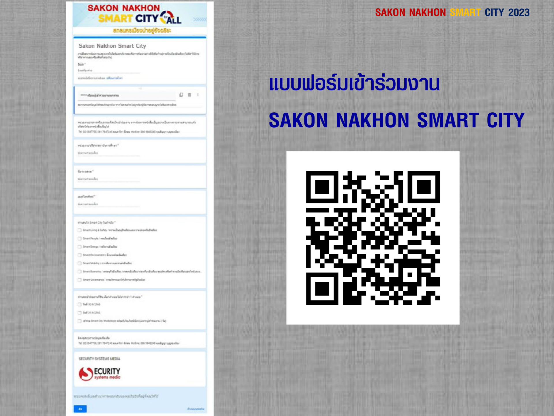 24/04/202321/10/2024SAKON NAKHON SMART CITY สกลนครเมืองน่าอยู่อัจฉริยะ NEWS & ACTIVITIES by Admin Share SAKON NAKHON SMART CITYสกลนครเมืองน่าอยู่อัจฉริยะ ลงทะเบียนเข้าร่วมงาน SAKON NAKHON SMART CITY Link ลงทะเบียนเข้าร่วมงานhttps://docs.google.com/forms/d/e/1FAIpQLSe2RKwwnNWHFj1kDuwauN7nAS0pC4LFflDA6RxjGQI7QM46Xw/viewform ติดต่อสอบถามและประสานงานโทรศัพท์ 02 0547755, 0817847245, Hotline: 086 9843245Email: smartcitythailand2021@gmail.comนางสาวดาริกา นึกสมสนใจเข้าร่วมแสดงเทคโนโลยีติดต่อ: 086 9843245 คุณธัญญา บุญรองเรืองemail: thunya.b@gmail.com