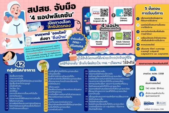 สปสช. ขยายบริการแพทย์ทางไกล ใน 5 จ. ปริมณฑล พบหมอออนไลน์ ผ่าน 4 แอปฯ สุขภาพ