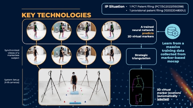 “ระบบจับการเคลื่อนไหวมนุษย์แบบไร้มาร์กเกอร์ (Marker)” สร้างภาพจำลองการเคลื่อนไหวมนุษย์แบบสามมิติโดยไม่ต้องไม่ต้องสวมใส่อุปกรณ์เพื่อการตรวจจับ หรือมาร์กเกอร์ตามร่างกาย ช่วยลดความยุ่งยาก ลดเวลาการใช้งานและประมวลผล ขณะนี้อยู่ระหว่างการจดสิทธิบัตร