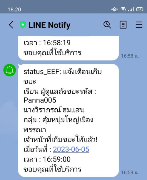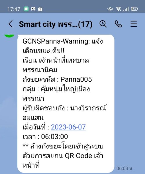 - แจ้งเตือนเมื่อปริมาณขยะในจุดนั้นเต็ม ผ่าน Application Line Dashboard