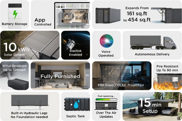 Pod Studio บ้านอัจฉริยะสมาร์ทโฮม สุดล้ำสมัย เทคโนโลยี AI ยืดหดไซส์ได้ 3 เท่าPod Studio ยังมาพร้อมกับแผงโซลาร์เซลล์ที่ติดอยู่กับกันสาดตัวบ้านและพอดสตูดิโอยังได้นำเทคโนโลยีสมาร์ทโฮมที่สามารถควบคุมระบบต่าง ๆในบ้านผ่านแอปพลิเคชั่นได้ทั้งหมด ไม่ว่าจะเป็นระบบน้ำ, ระบบไฟต่างๆของตัวบ้าน ซึ่งยังตัวบ้านยังสามารถอัปเดตเวอร์ชั่น Over The Air ได้ด้วย
