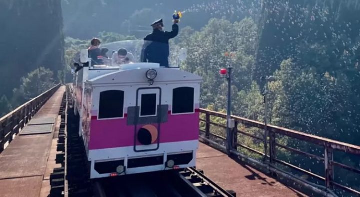 รถไฟนำเที่ยวสีชมพูสดใสคันนี้ ออกแบบมาให้ไร้หลังคาเนื่องจากต้องการให้นักท่องเที่ยวได้ชมความสวยงามของธรรมชาติในจังหวัดมิยาซากิอย่างเต็มตา โดยรถไฟคันนี้จะวิ่งเป็นเวลา 30 นาที โดยใช้พลังงานจากน้ำมันไบโอดีเซลในการขับเคลื่อน