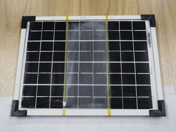 การทดสอบประสิทธิภาพในการป้องกันฝุ่น โดยพื้นที่ตรงกลางคือพื้นที่ที่ไม่ได้เคลือบน้ำยา