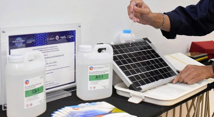ศูนย์นาโนเทคโนโลยีแห่งชาติ (นาโนเทค) สำนักงานพัฒนาวิทยาศาสตร์และเทคโนโลยีแห่งชาติ (สวทช.) วิจัยและพัฒนา ‘น้ำยาเคลือบพื้นผิวโซลาร์เซลล์สำหรับใช้ลดการเกาะของน้ำและฝุ่น’ ปัจจุบันพร้อมขยายผลสู่เชิงพาณิชย์ เปิดตัวในฐานะผลิตภัณฑ์แรกของบริษัทนาโน โค๊ตติ้ง เทค จำกัด หนึ่งในบริษัทสตาร์ตอัปที่เกิดขึ้นภายใต้กลไกการส่งเสริมและผลักดันผลงานวิจัยไปสู่การสร้างธุรกิจของ สวทช.