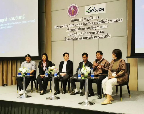 ในโอกาสนี้ ดร.สยาม ลววิโรจน์วงค์ โฆษก GISTDA และผู้อำนวยการสำนักประยุกต์และบริหารภูมิสารสนเทศ กล่าวว่า “GISTDA มีความตั้งใจที่จะนำเทคโนโลยีอวกาศและภูมิสารสนเทศมาบูรณาการให้เกิดการใช้ประโยชน์กับประเทศไทยให้มากที่สุด โดยเฉพาะในภาคการเกษตร เทคโนโลยีจากดาวเทียมสามารถสร้างความสัมพันธ์ทั้งเชิงพื้นที่ เชิงเวลา และสร้างสัมพันธภาพกับเกษตรกร ผ่านแพลตฟอร์มเกษตรเชิงพื้นที่รายแปลงที่ชื่อว่า “Dragonfly””