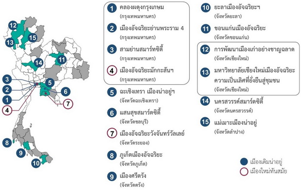 รูปที่ 1 รายชื่อของเมืองอัจฉริยะทั้ง 15 เมือง