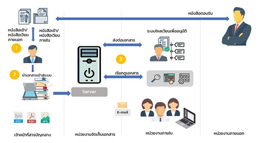 3 E-Saraban ระบบนี้ถูกนำมาใช้กับการจัดการหนังสือราชการภายในและภายนอกหน่วยงาน โดยมีจุดประสงค์ในการลดการใช้กระดาษ ผู้มีอำนาจอนุมัติเอกสารสามารถอนุมัติเอกสารได้ทุกที่ทุกเวลา ผู้ปฏิบัติงานสามารถติดตามความคืบหน้าของการอนุมัติตามลำดับชั้น แสดงดังรูปที่ 4
