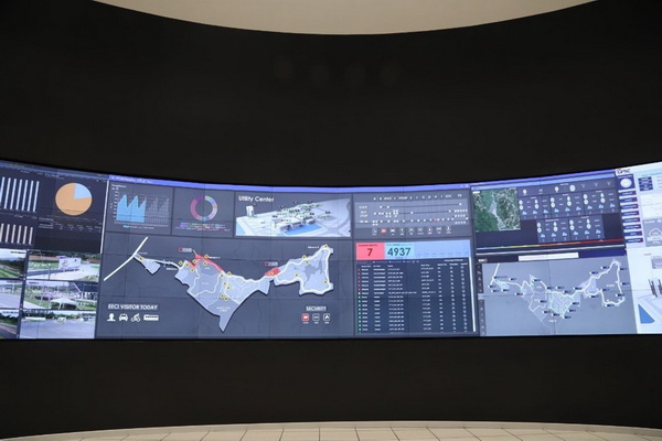4 Intelligence operation center: IOC IOC หรือ ศูนย์สั่งการอัจฉริยะ เป็นระบบที่ใช้ในการติดตาม เฝ้าระวังและบริหารจัดการผลกระทบที่อาจเกิดขึ้นกับประชาชนในพื้นที่ โดยที่ระบบนี้จะทำงานร่วมกับ Cloud Platform ที่ช่วยในการรวบรวมและวิเคราะห์ข้อมูลแบบอัตโนมัติ จากนั้นนำข้อมูลที่ผ่านการวิเคราะห์ไปแสดงผลบนหน้าจอ IOC ตัวอย่างของข้อมูลที่นำมาแสดงผล เช่น ข้อมูลคุณภาพอากาศ เชิงพื้นที่ ข้อมูลปริมาณน้ำฝนเชิงพื้นที่ ข้อมูลความถี่ในการร้องเรียนปัญหา ข้อมูลการจราจร ข้อมูลปริมาณการใช้น้ำ ใช้ไฟ เป็นต้น ข้อมูลเหล่านี้จะเป็นตัวช่วยให้ผู้มีอำนาจตัดสินใจแก้ปัญหาที่เกิดขึ้นได้ ถูกจุดและทันท่วงที ตัวอย่างของ IOC แสดงดังรูปที่ 5