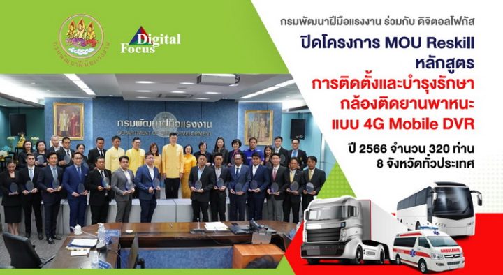 กรมพัฒนาฝีมือแรงงาน ร่วมกับ ดิจิตอลโฟกัส ปิดโครงการ MOU Reskill หลักสูตรการติดตั้งและบำรุงรักษากล้องติดยานพาหนะแบบ 4G Mobile DVR ปี 2566 จำนวน 320 ท่าน 8 จังหวัดทั่วประเทศ