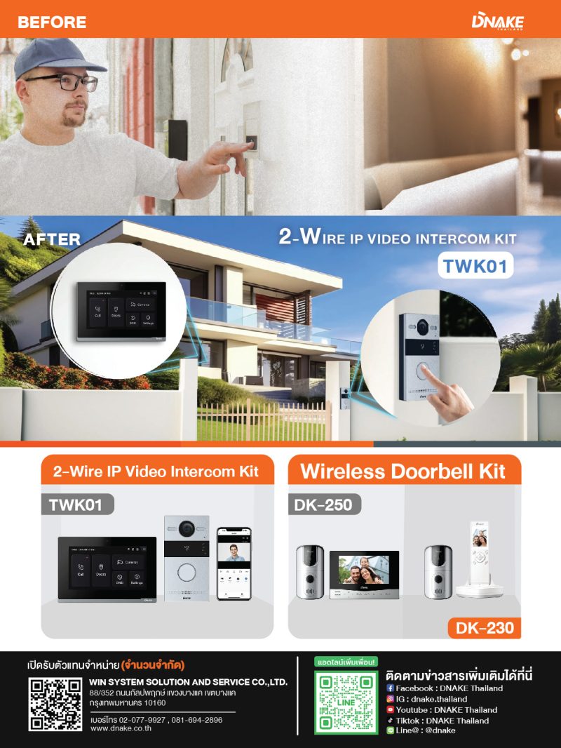 08/01/202418/08/20242-Wire IP Video Intercom Kit ARTICLE SECURITY PRODUCT REVIEW by Admin Share WIN SYSTEM SOLUTION AND SERVICE CO.,LTD.88/352 ถนนกัลปพฤกษ์ แขวงบางแคเขตบางแค กรุงเทพมหานคร 10160โทร. 081 694 2896อีเมล: sales@wsss.co.thwww.wsss.co.thwww.dnake.co.th