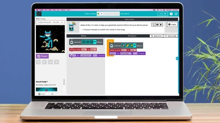 นักศึกษาจะได้เขียนโค้ดเพื่อสร้างลีลาท่าเต้นโดยใช้อิโมจิ (Emoji) เพื่อเป็นคำสั่งป้อนข้อมูล AI prompt ในการสร้างฉากหลังที่เคลื่อนไหวได้ กิจกรรมนี้จะช่วยส่งเสริมการเรียนรู้เบื้องต้นเกี่ยวกับ generative AI รวมไปถึงโมเดลภาษาขนาดใหญ่ (large language models) และการใช้งานในการวิเคราะห์แนวทางในการสร้างสิ่ิงใหม่ ๆ ทั้งในรูปแบบภาพและตัวหนังสือ