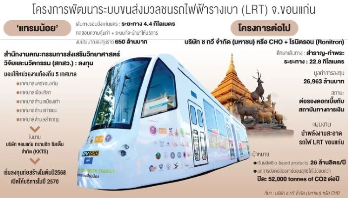 - นำร่องรถไฟฟ้า LRT ภูมิภาคสายแรกในไทย เส้นทางรอบบึงแก่นนคร 4.4 กิโลเมตร