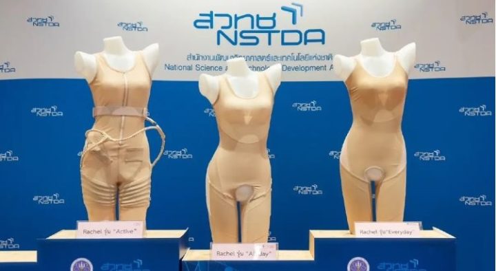 กระทรวงการอุดมศึกษา วิทยาศาสตร์ วิจัยและนวัตกรรม (อว.) สำนักงานพัฒนาวิทยาศาสตร์และเทคโนโลยีแห่งชาติ (สวทช.) โดยศูนย์เทคโนโลยีโลหะและวัสดุแห่งชาติ (เอ็มเทค) ร่วมกับ สถาบันวิจัยระบบสาธารณสุข (สวรส.) สำนักงานคณะกรรมการส่งเสริมวิทยาศาสตร์ วิจัยและนวัตกรรม (สกสว.) และบริษัท ไทยวาโก้ จำกัด (มหาชน) เปิดตัวนวัตกรรมชุดบอดี้สูท “เรเชล (Rachel)” โดยมีวิทยากรผู้เชี่ยวชาญด้านต่าง ๆ ร่วมแลกเปลี่ยนความคิดเห็นให้ข้อมูลเกี่ยวกับนวัตกรรมเพื่อสังคมอายุยืน