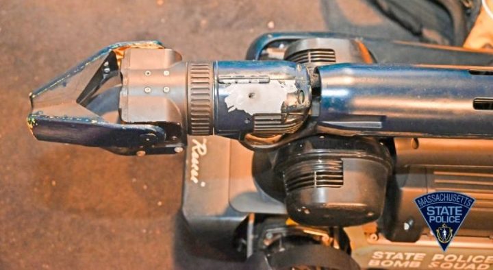 ตำรวจรัฐแมสซาชูเซตส์ กล่าวขอบคุณ Spot หุ่นยนต์สุนัขตำรวจตัวหนึ่ง ที่ช่วยหลีกเลี่ยงโศกนาฏกรรมที่เกี่ยวข้องกับบุคคลที่ถูกขังอยู่ในบ้าน และมันกลายเป็นหุ่นยนต์สุนัขตำรวจรายแรกที่ถูกยิงเสียหาย