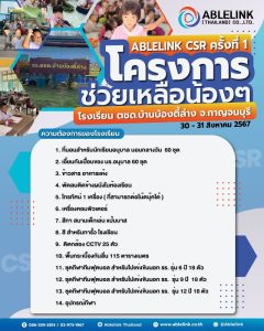 ABLELINK CSR ครั้งที่ 1 โครงการช่วยเหลือน้อง ๆ โรงเรียน ตชด.บ้านบ้องตี้ล่าง