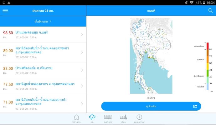 Thaiwater สามารถเช็กข้อมูลได้ครอบคลุมทั่วประเทศไทยไม่ว่าจะเป็นข้อมูลพายุ ฝน ระดับน้ำ สถานการณ์เขื่อน หรือคลื่น คุณสามารถหาข้อมูลเหล่านี้ได้ในแอปเดียว