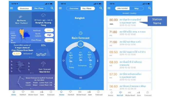 Thaiwater แอปฯเช็กน้ำท่วม หรือสามารถติดตามและเฝ้าระวังสถานการณ์อากาศและน้ำด้วยตนเอสามารถใช้ดูข้อมูลครอบคลุมตั้งแต่ฟ้าถึงทะเล มีทั้งข้อมูลพายุ ฝน ระดับน้ำ สถานการณ์เขื่อน และคลื่น ทั้งปัจจุบัน และคาดการณ์ล่วงหน้า