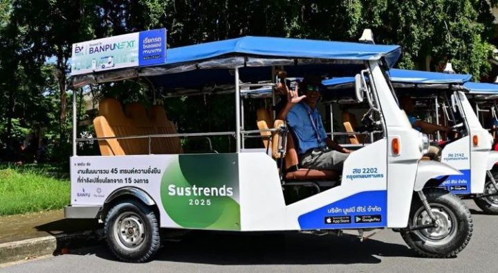 Sustrends 2025 ปีนี้ได้ “รถตุ๊กตุ๊กไฟฟ้า MuvMi” มาอำนวยความสะดวกผู้เข้าร่วมงานจากรถไฟฟ้า MRT สถานีศูนย์การประชุมแห่งชาติสิริกิติ์ สร้างประสบการณ์การจัดงานสัมมนาด้วยการใช้พลังงานสะอาด ณ พิพิธภัณฑ์สวนป่าเบญจกิติ