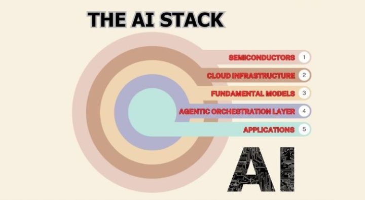 AI Stack คือชั้นต่างๆ ของเทคโนโลยีที่ช่วยสร้างระบบ AI ที่สมบูรณ์ เปรียบเทียบง่ายๆ เหมือนกับการสร้างบ้าน ที่ต้องมีฐานราก โครงสร้าง ระบบไฟฟ้า ประปา และส่วนตกแต่ง AI Stack ก็เช่นกัน มีองค์ประกอบหลายชั้น ตั้งแต่ฮาร์ดแวร์ ซอฟต์แวร์ ไปจนถึงแอปพลิเคชัน