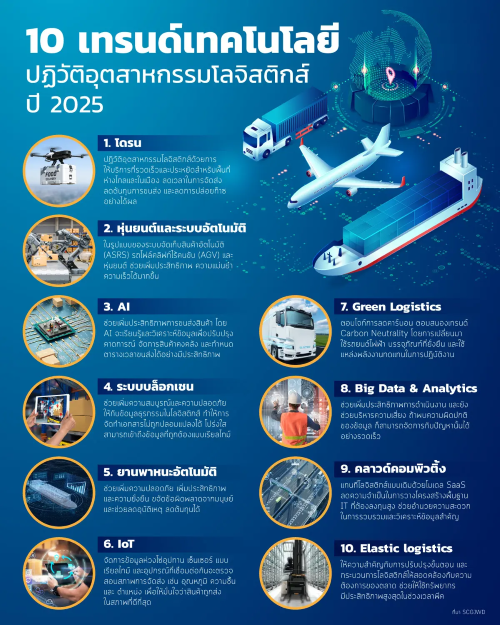 ทั้งนี้ อุตสาหกรรมโลจิสติกส์ ยังต้องปรับตัวกับการเปลี่ยนแปลงทางเทคโนโลยีเพื่อรองรับความต้องการที่เพิ่มขึ้นของลูกค้า ทั้งในเรื่องของประสิทธิภาพ ความโปร่งใส และ ความยั่งยืน ตั้งแต่การใช้ระบบอัตโนมัติไปจนถึงการวิเคราะห์ข้อมูลขั้นสูง โซลูชั่นที่เป็นนวัตกรรมกำลังปรับเปลี่ยนห่วงโซ่อุปทาน ช่วยให้บริษัทสามารถรับมือกับความท้าทาย และ ความต้องการที่ซับซ้อนของลูกค้าได้
