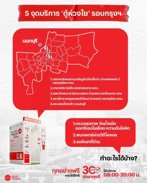จุดบริการ ‘ตู้ห่วงใย’ รอบกรุงเทพมหานครและปริมณฑล ใครอยากพบแพทย์ออนไลน์-รับยาฟรีได้ที่บ้านหรือร้านขายยา ภายใต้สิทธิ 30 บาทรักษาทุกที่ พร้อมเปิด 42 กลุ่มอาการแบบไหนใช้บริการได้บ้าง?