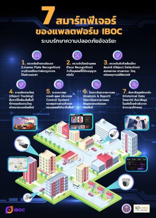 ผศ.ดร.วรรณรัช ยกตัวอย่างแพลตฟอร์ม IBOC ระบบรักษาความปลอดภัยอัจฉริยะที่ใช้ IoT ในการเชื่อมต่ออุปกรณ์และส่งข้อมูลขึ้นคลาวด์ โดยล่าสุดได้เพิ่มระบบ AI เข้ามาเสริมการทำงาน ทำให้สามารถวิเคราะห์ข้อมูลได้แบบเรียลไทม์และร่วมมือกับผู้มีส่วนเกี่ยวข้องได้อย่างมีประสิทธิภาพโดยใช้ในการวิเคราะห์ภาพจากกล้องวงจรปิด เพื่อตรวจจับเหตุการณ์ผิดปกติ เช่น การล้ม การทะเลาะวิวาท การบุกรุก หรือการจราจรติดขัด แล้วแจ้งเตือนไปยังเจ้าหน้าที่ที่เกี่ยวข้องแบบเรียลไทม์ ระบบนี้จึงมีประโยชน์อย่างมากในการเพิ่มประสิทธิภาพในการรักษาความปลอดภัย และช่วยให้เจ้าหน้าที่สามารถตอบสนองต่อเหตุการณ์ต่างๆ ได้อย่างรวดเร็วและแม่นยำยิ่งขึ้น