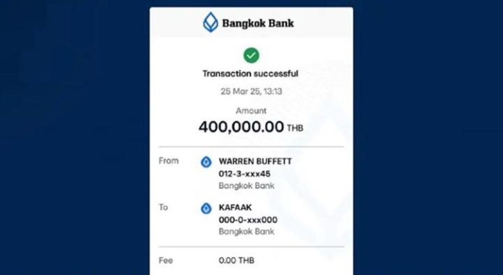 ต้นฉบับยอดเงิน 23,000 บาท ผมโอนจากตัวเองไปบัญชีตัวเองนี่แหละ แต่ผมให้ ChatGPT แก้เป็นปู่บุฟเฟ่ต์โอนเงินหาผม 400,000 บาทแทน แก้พวกเลขอ้างอิงด้วย