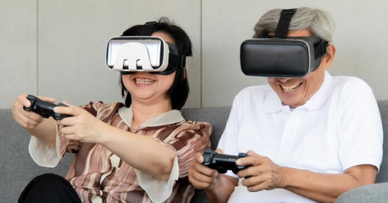 Virtual Reality (VR) หรือเทคโนโลยีโลกเสมือนจริง กำลังถูกนำมาใช้ในยุค Aging Society เพื่อช่วยให้ผู้สูงอายุมีคุณภาพชีวิตที่ดีขึ้น ทั้งในด้านสุขภาพร่างกายและจิตใจ เช่น โปรแกรมกายภาพบำบัดเสมือนจริง ช่วยให้ผู้สูงอายุสามารถทำกายภาพได้จากที่บ้าน โดยมีการออกแบบโปรแกรมที่กระตุ้นการเคลื่อนไหวและปรับปรุงสมรรถภาพร่างกาย เช่น การฝึกสมดุลและการเคลื่อนไหวในสภาพแวดล้อมเสมือนจริง ซึ่งมีประสิทธิภาพมากกว่าการฝึกแบบดั้งเดิม