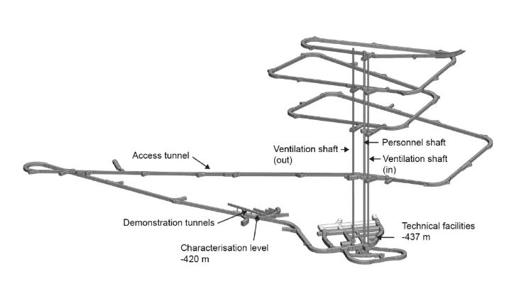 คลังเก็บขยะกัมมันตภาพรังสีใต้ดิน ที่ระดับความลึก 430 เมตร โดยจะต้องเก็บเชื้อเพลิงไว้ในกระป๋องทองแดง แล้วใส่เข้าไปในช่องที่ขุดไว้ในผนังหินแกรนิตของคลังเก็บใต้ดิน จากนั้นทุกอย่างจะถูกปิดผนึกด้วยเบนโทไนต์ ทำหน้าที่เป็นตัวกันกระแทกป้องกันการเคลื่อนตัวของชั้นหินเบื้องล่าง