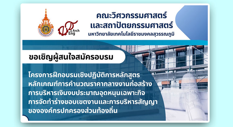 โครงการอบรมเชิงปฏิบัติการหลักสูตร: เกณฑ์การคำนวณราคากลางงานก่อสร้างการบริหารงบประมาณ